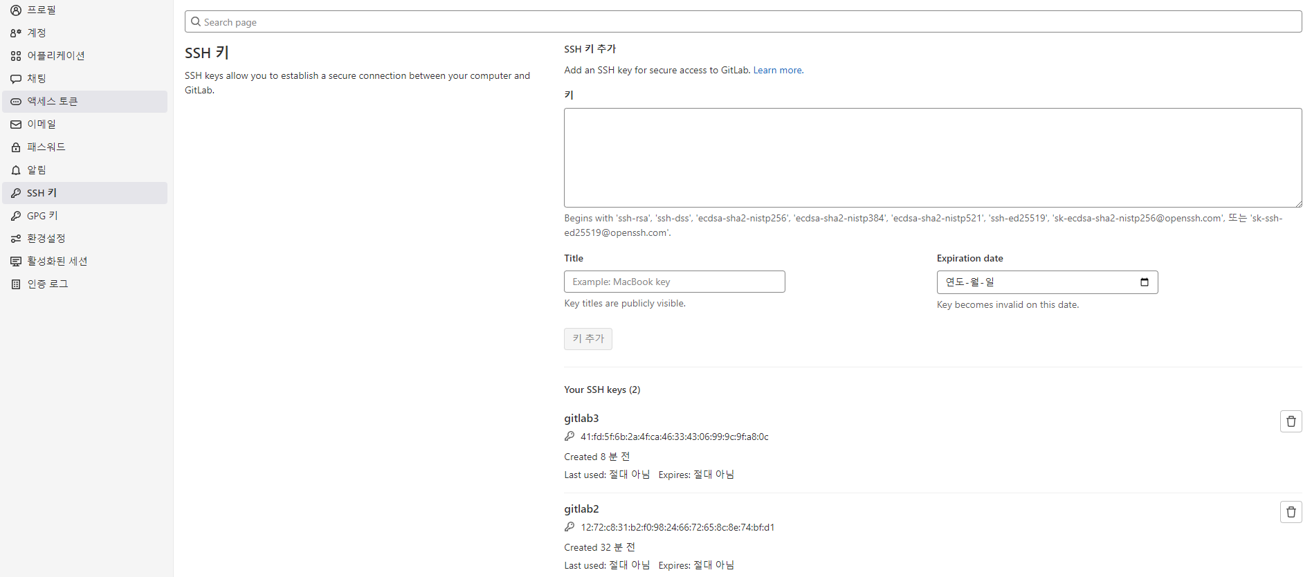 3. gitlab ssh키 등록에 .pub 내용물 등록
