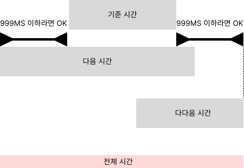 4. 혹은 기준 데이터의 끝값에서 비교데이터의 시작 값 차이가 999ms 이하라도 가능