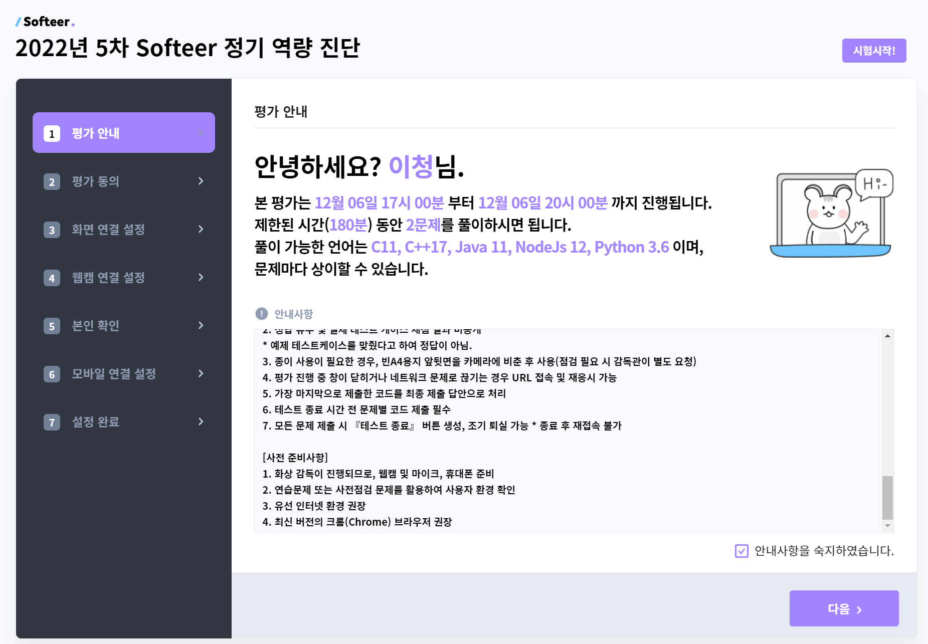 주관사가 현대인 코딩 역량 진단을 받았습니다.
